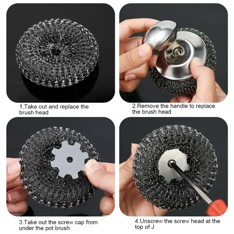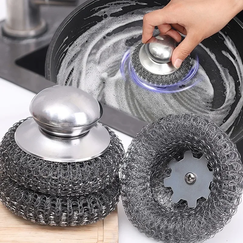This brush is entirely made of stainless steel and has a enduring, rust proof structure that ensures long-lasting performance. Fine steel wire balls can effectively remove stubborn stains without falling off or deforming, making dishwashing easy.