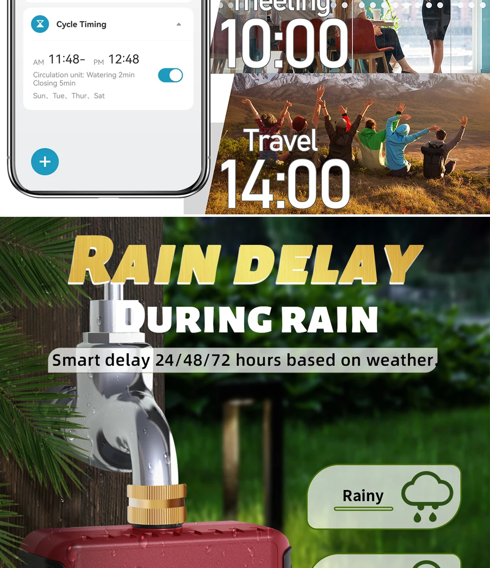 3. According to the local weather, the water valve automatically delays watering (requires a gateway), and the weather delay can also be set manually
